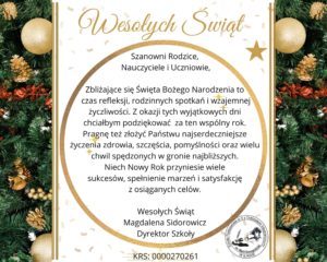 W miniony poniedziałek 9 grudnia nasza szkoła tętniła świątecznym życiem....