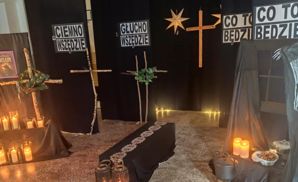 26 listopada br., w 170 rocznicę śmierci Adama Mickiewicza, odbyła się nastrojowa i pełna klimatu inscenizacja „Dziadów. Część II”. Przedstawienie, przygotowane w mrocznej i tajemniczej scenografii, wprowadziło publiczność w niezwykły, obrzędowy świat stworzony przez wieszcza. Blask świec, czarne kotary i sugestywne rekwizyty podkreśliły atmosferę zadumy i mistycyzmu. W spektaklu wystąpiło 13 uczniów z klas VI …